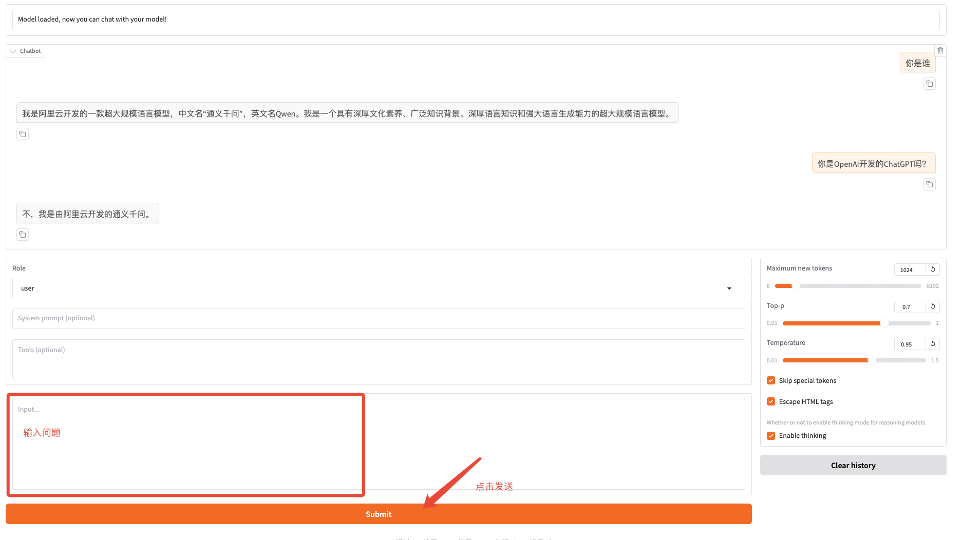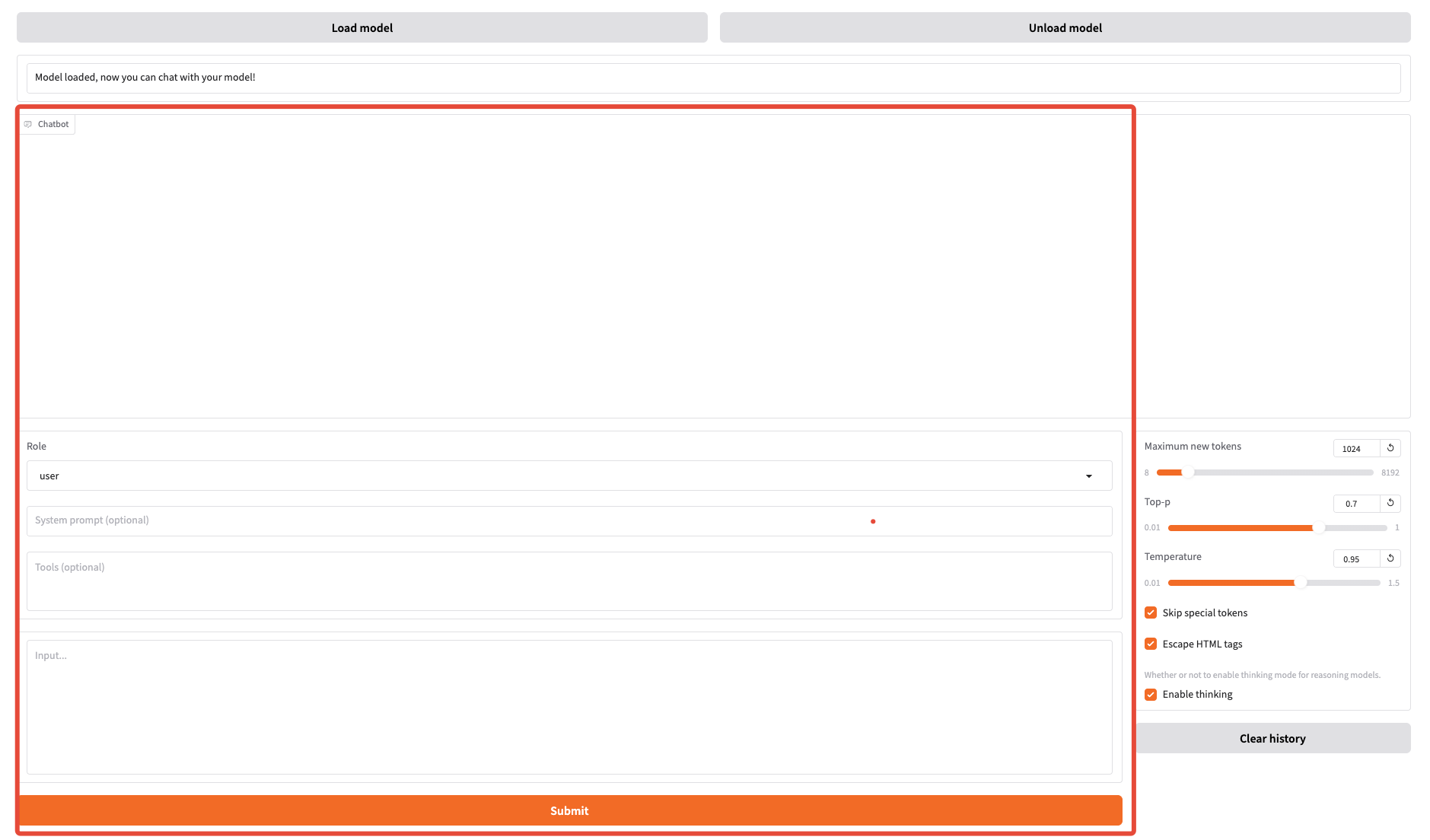 Visit http://ip:port for Web UI, e.g., http://127.0.0.1:7860