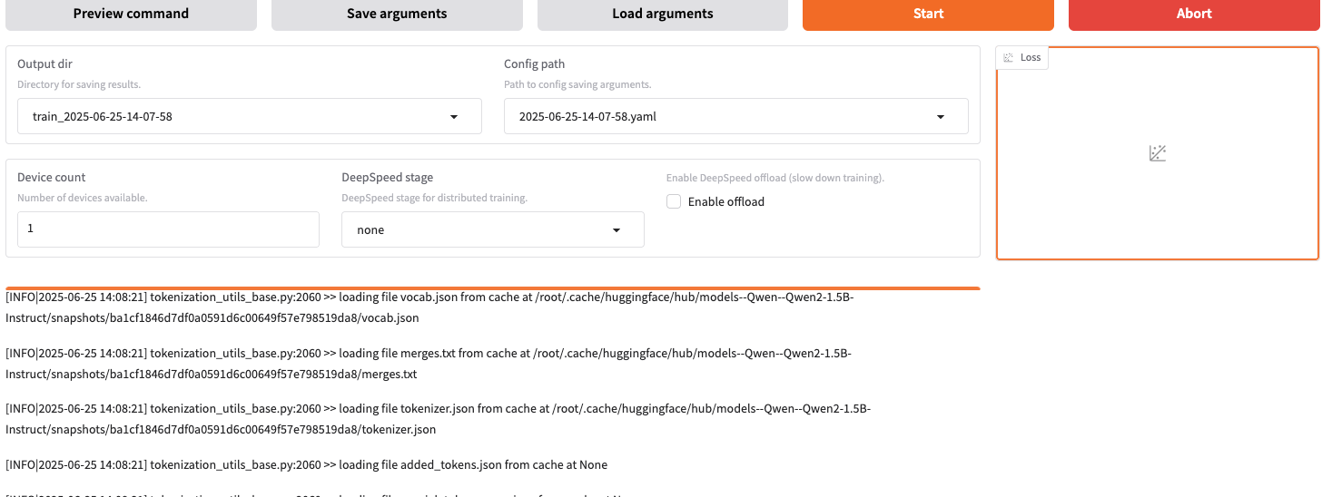 看到下述输出,代表web 服务启动成功,可以使用 web 微调了: