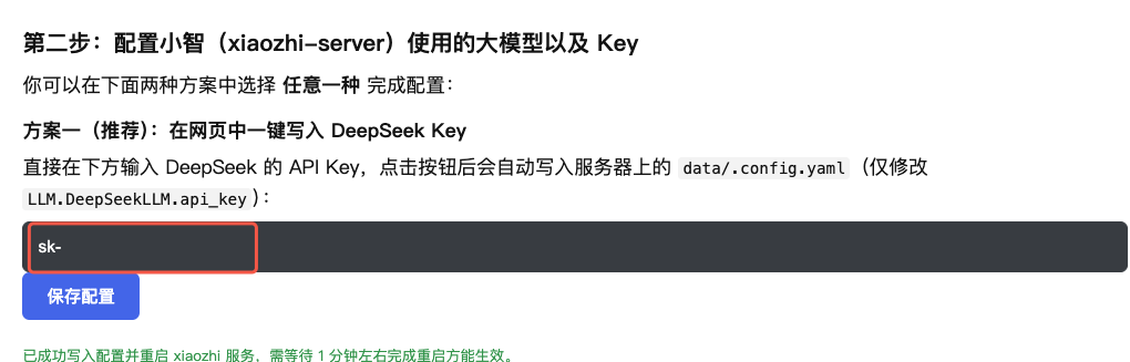 在网页里填写 DeepSeek 的 API Key,然后点击保存,等待 1-2 分钟后就生效了
